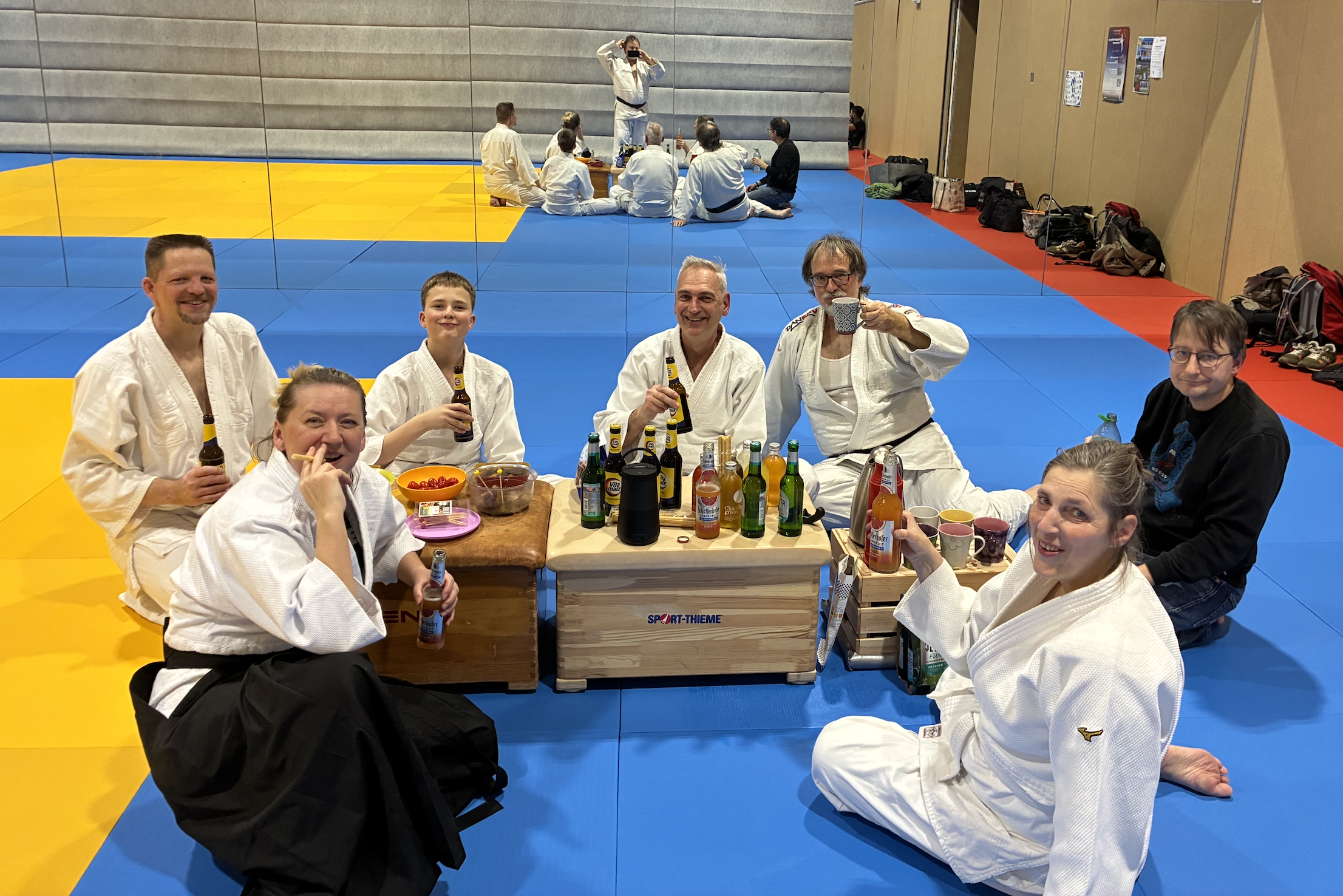 Ich möchte mich bei Karen für die nette Idee bedanken und ebenfalls bei allen, die Getränke oder Snacks mitgebracht hatten. So konnten wir in 'leckerer' Atmosphäre das Jahr noch einmal Revue passieren lassen. Wir hatten zwar gerade erst unsere vorgezogene Weihnachtsfeier in größerer Runde gehabt, aber man kann ja nie genug feiern. Den Spaß kann man uns sicher ansehen und ich freue mich schon mit dieser guten Energie am 06.01.2026 wieder mit dem Training zu beginnen.